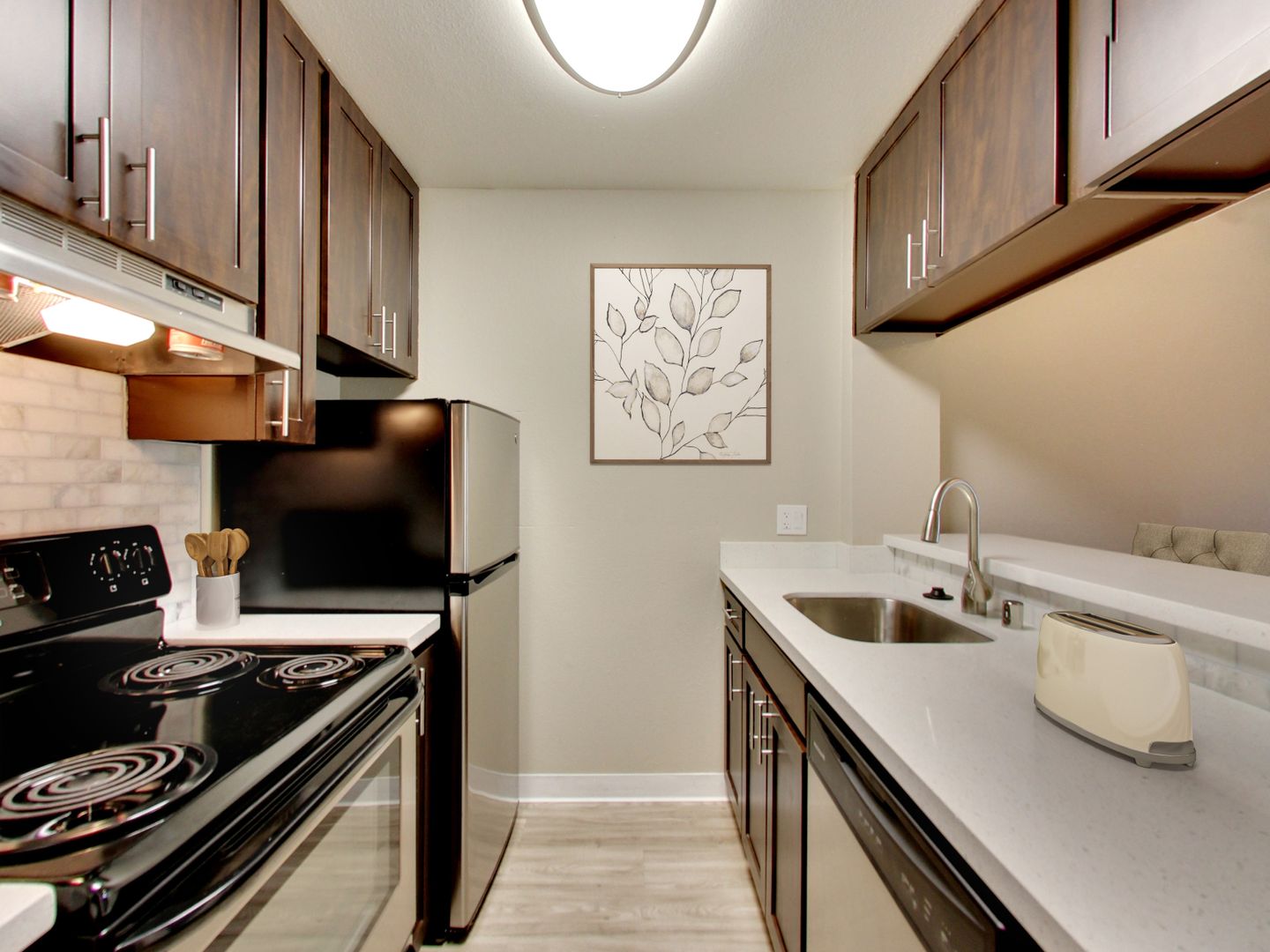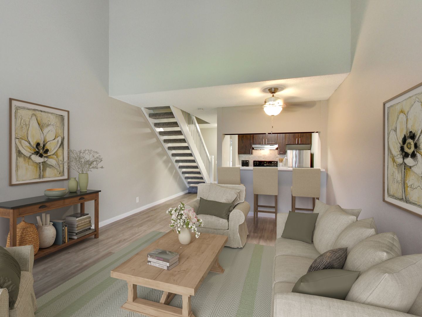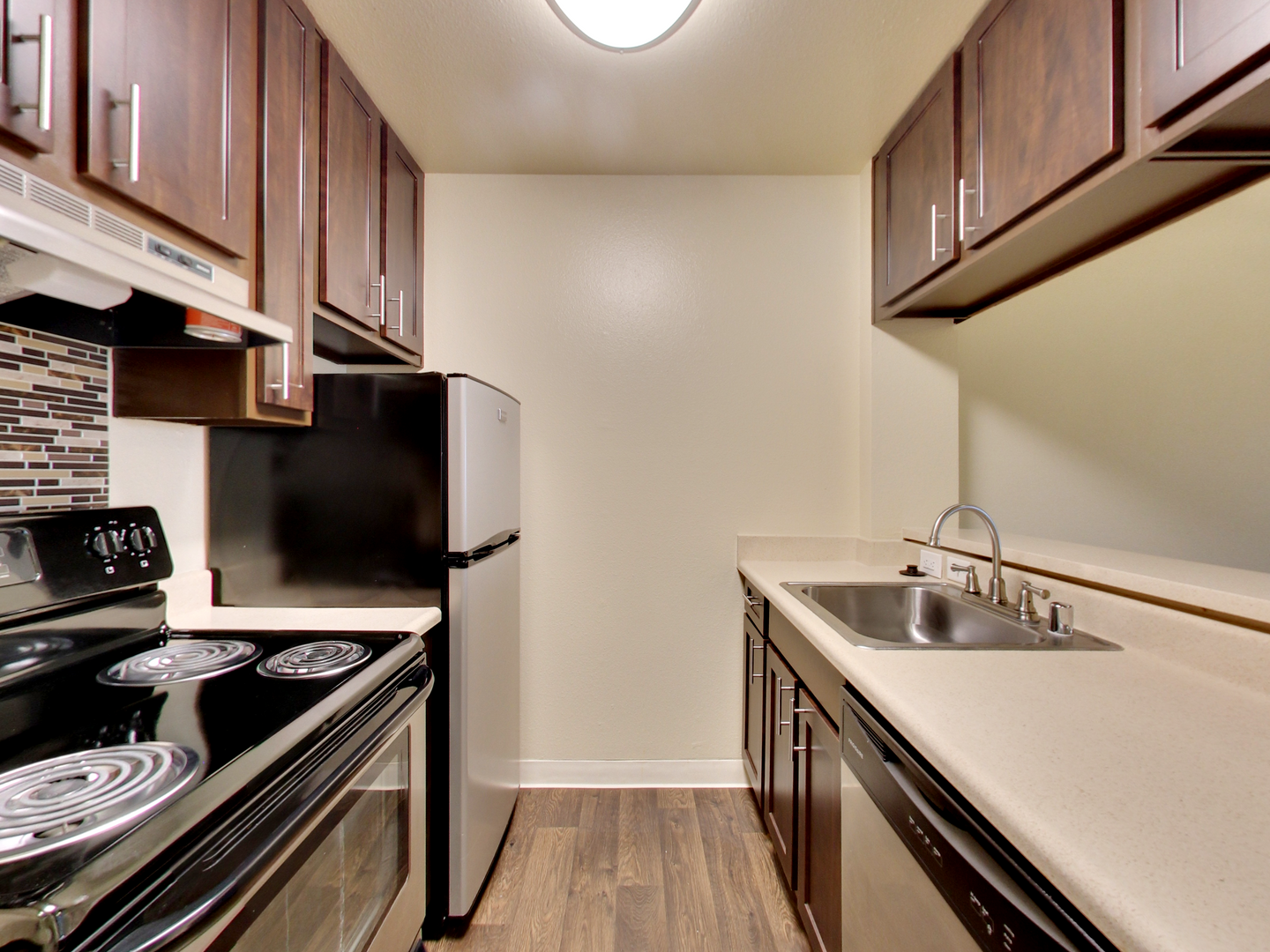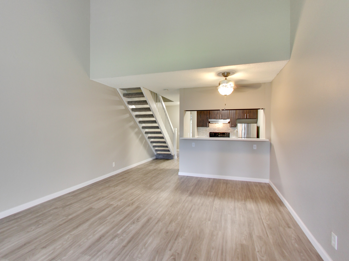 Come home to The Timbers Apartments in Hayward, California’s Jackon Triangle neighborhood. Our 2 Bed and 1 Bathroom floor plan comes complete with everything you need to feel right at home. Our floor plans feature vaulted ceilings, a private patio or balcony, stainless steel appliances, and a breakfast bar. Here, you can discover the ideal combination of personal and community amenities, including a fitness center, laundry facility, Amazon package lockers, and more! Our freshly renovated interiors include designer touches such as hardwood flooring, two-tone paint, large windows, and a modern kitchen. In our neighborhood, you'll find close access to the world at your fingertips. Our community is close to Chabot College and St. Rose Hospital, and our proximity to I-880 and SR 92 makes it very easy to get around. Discover better living at your fingertips and come home to The Timbers in Hayward, CA today.